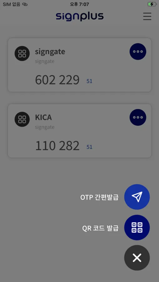 한국정보인증에서 새롭게 제공하는 SignPLUS 앱은 iOS 기반의 스마트기기에서 고객사의 2차인증 발급 및 인증 서비스를 제공합니다. 스마트기기에서 SignPLUS 앱을 설치 후 기능을 사용하실 수 있습니다.