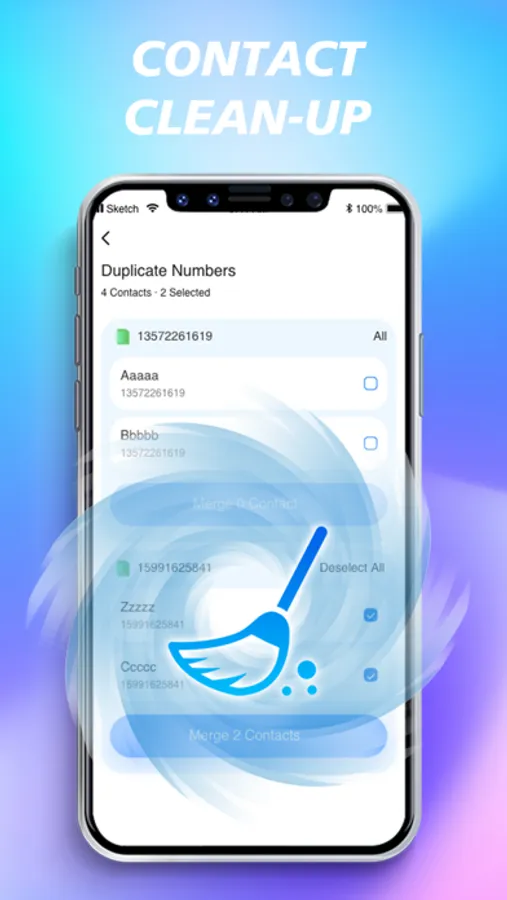 - Merge contacts with duplicate numbers or email addresses