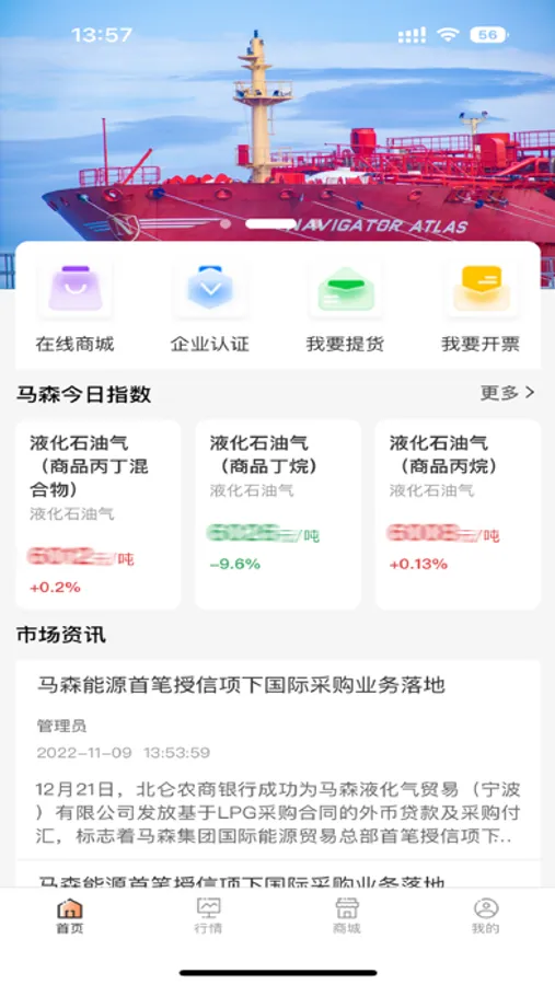 马森电商APP是一款集液化石油气,商品丙烷,商品丁烷交易与资讯服务于一体的电商平台。