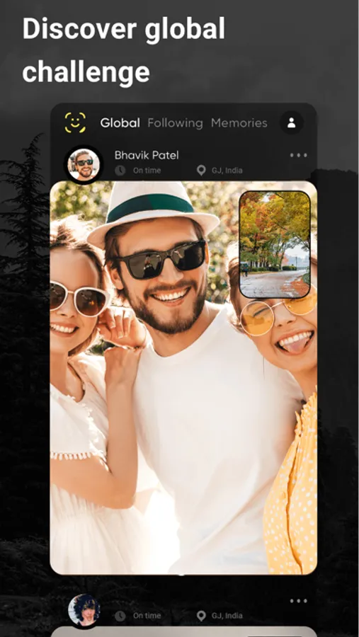 After get notification first to see what’s today challenge then follow, capture and share. User have option to share global or friends only or disable to share with location. Once our system trigger notification all past challenges in global section will remove and new photo will added.