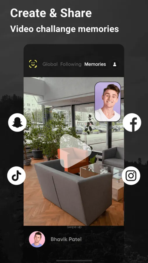 Facefy has a video memories feature. In this feature user must have minimum 8 challenge photo. Share your video memories in any social networking like Facebook, instagram and etc.