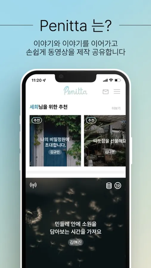 펜잇다는 바쁜 일상 속, 글과 소리를 합성할 수 있는 간단한 에디터를 활용하여, 짧지만 긴 여운의 숏폼 영상 콘텐츠 및 참여형의 롱 & 미들폼 영상 콘텐츠를 만들고 공유할 수 있는 서비스입니다.