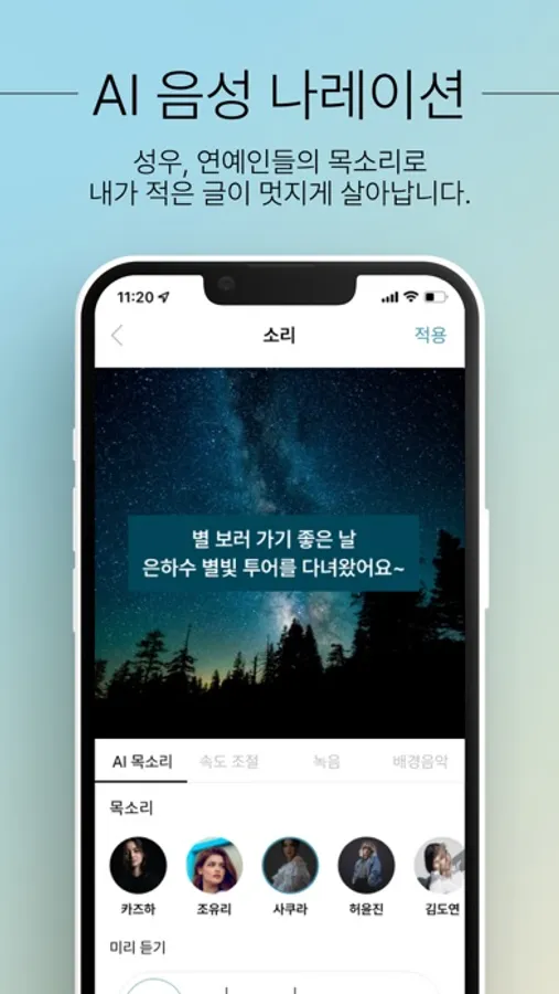 - 성우 연예인급 나레이션 AI 목소리 제공
