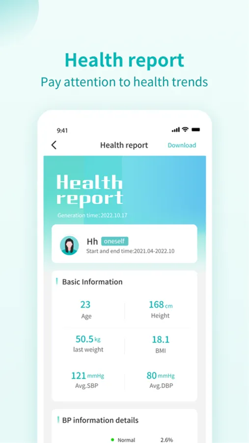 Hengyi Health App is a health record App, which can synchronize blood pressure, sleep, heart rate, blood oxygen and other data of Hengyi wrist blood pressure monitor to the cloud through Hengyi Health App, and can view historical health data