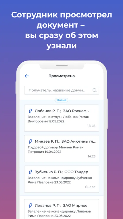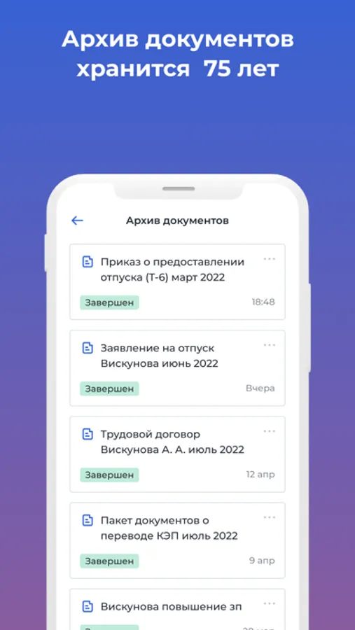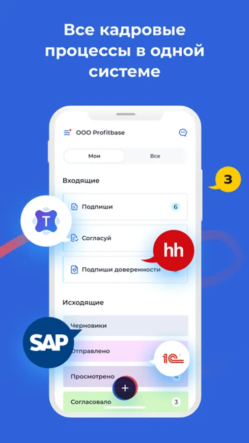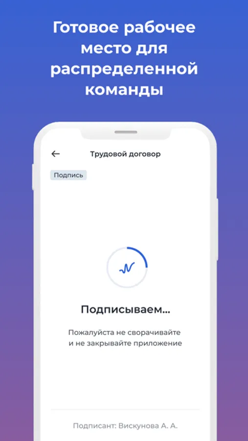 Кадровый документооборот в смартфоне. С онлайн выпуском электронной подписи для распределенных команд, работает с 1с, с нерезидентами. Соответствует 63ФЗ и ТК РФ.