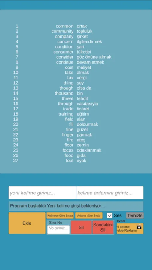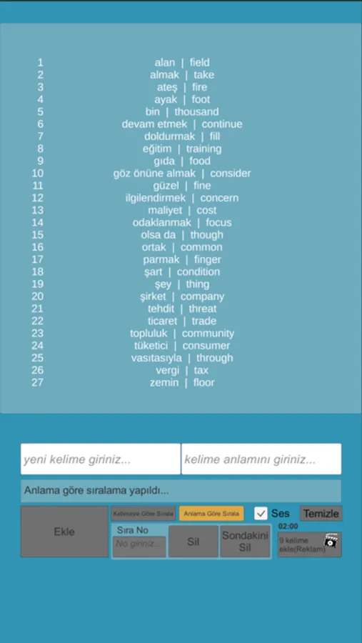 - kelime veya anlamına göre listeyi sıralama (sadece gösterir)
