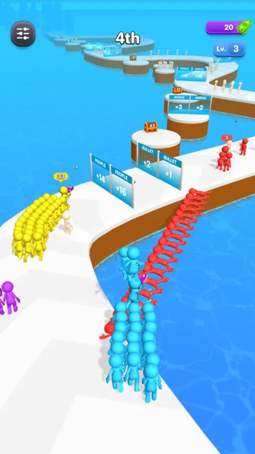 Collect the stickmen from the platform or steal from opponents. Make shortcuts by using your stickmen.