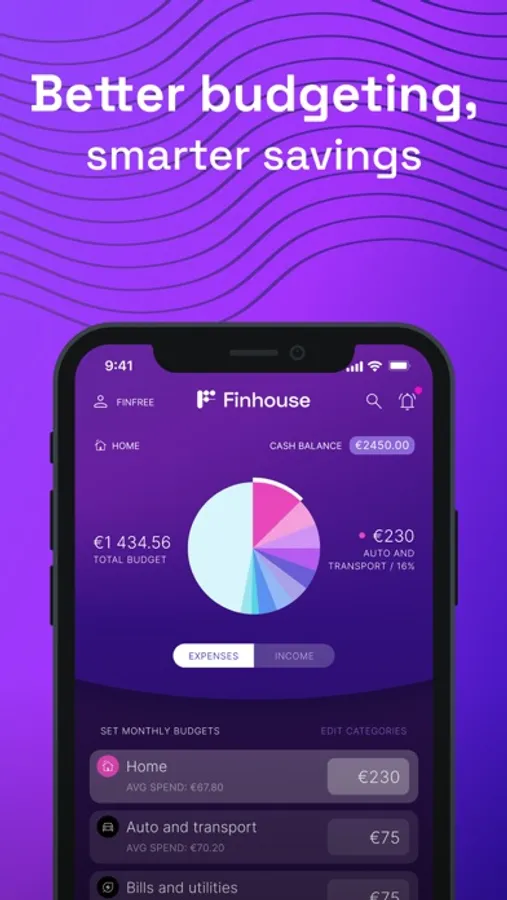 Finhouse is the finance management app that brings together all of your finances. From balances and budgets to financial goals, your money essentials are now in one place. Join the new generation of users who trust Finhouse to help them reach their goals from the very beginning of their money management life.