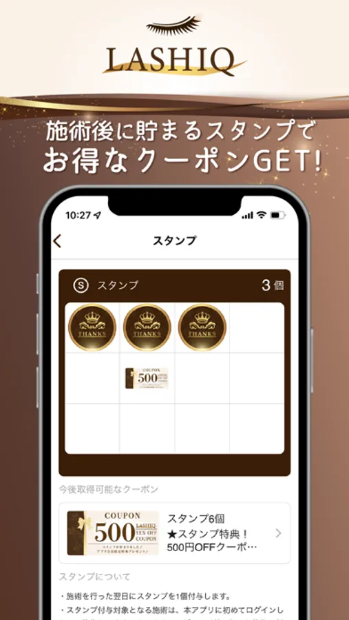 ご来店スタンプをためるとお得なクーポンが発行されます(ご利用条件がある場合がございます)