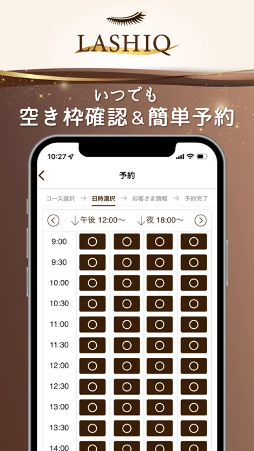 いつでもお手元のスマートフォンからご希望のお時間帯のチェック・ご予約が可能です。