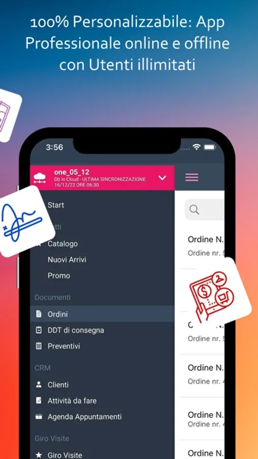 Oneorder è l'App completa di programma per la Raccolta Ordini, gestione delle vendite, Catalogo Prodotti Digitale, dedicata agli Agenti di commercio, alla Rete vendita e al Cliente finali.