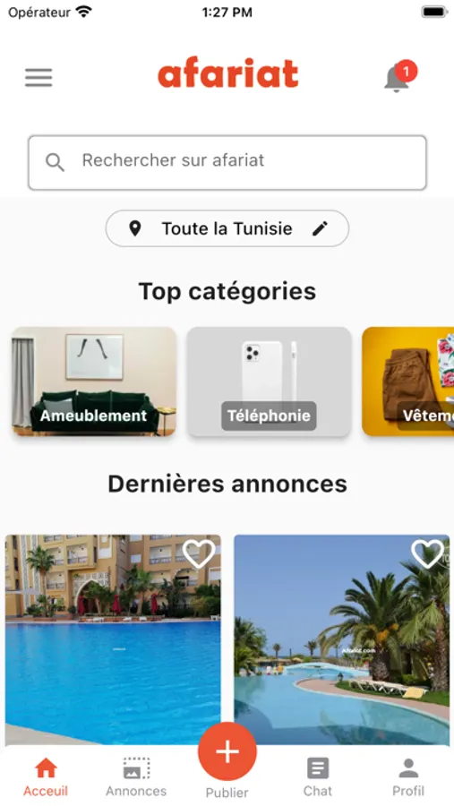 Affariyet Tayara : un marketplace dans votre poche, tout ce que vous pouvez imaginer que vous pouvez trouver sur Afariat Tayara ! Trouvez les meilleures affaires PRÈS DE CHEZ VOUS.