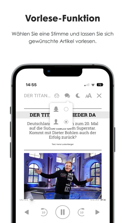 - Vorlesefunktion mit männlicher oder weiblicher Stimme