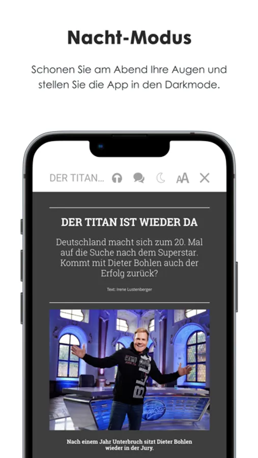 - «Nachtmodus» für ein Augenschonendes Leseerlebnis am Abend