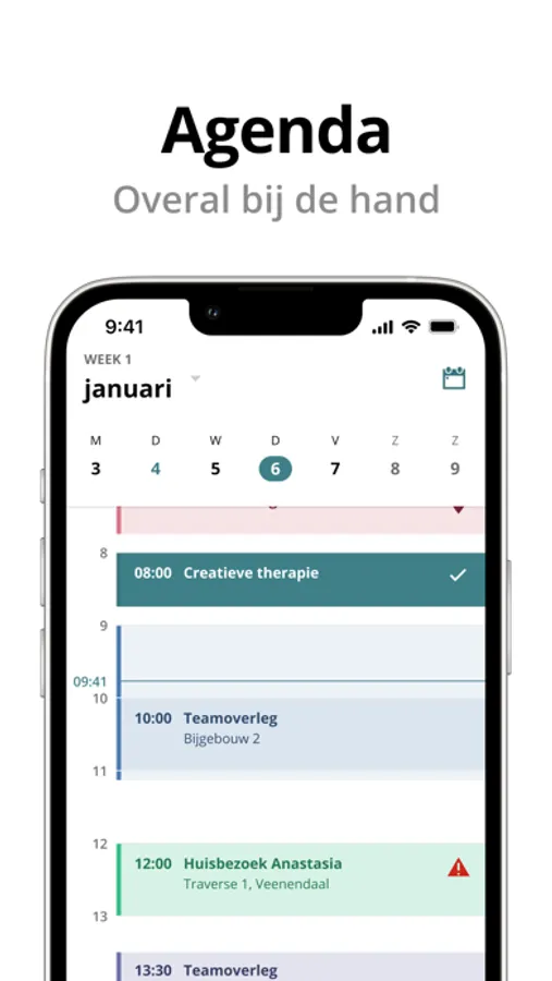 Volledige agendaweergave passend bij de context waarin je je als behandelaar op dat moment bevindt.