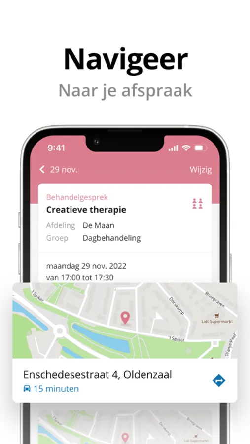 Navigeer direct vanuit de agenda naar de afspraaklocatie met 1 druk op de knop.