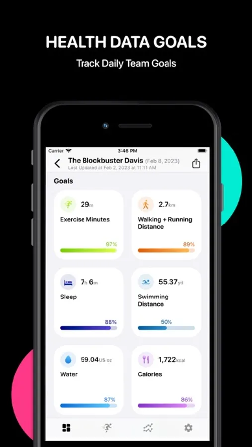 The health data goals section allows you to set daily goals for your team and track their progress towards these goals. Motivate and keep your team on track with this helpful feature.