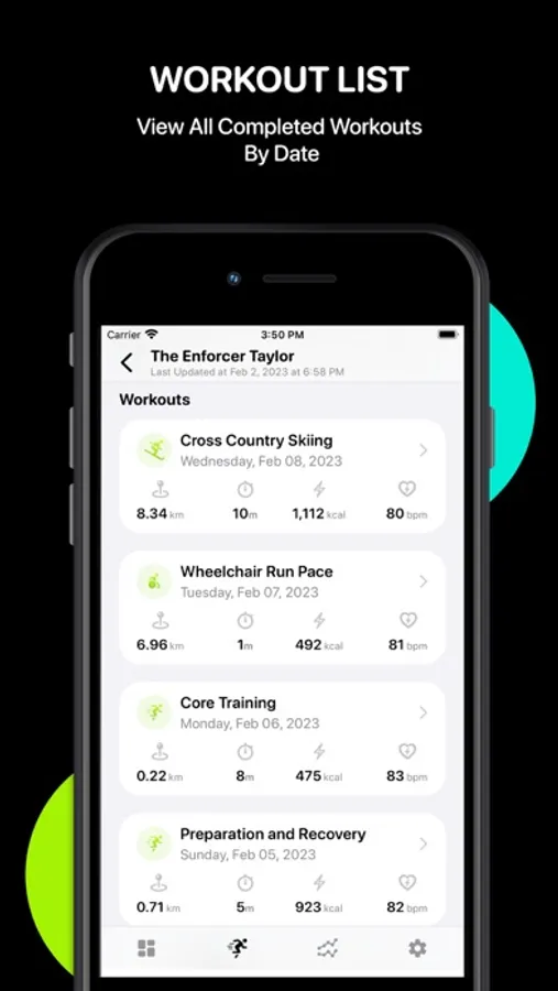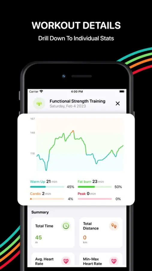 Need to know the specifics of a particular workout? The workout details section lets you drill down to individual stats, giving you a detailed view of each workout.