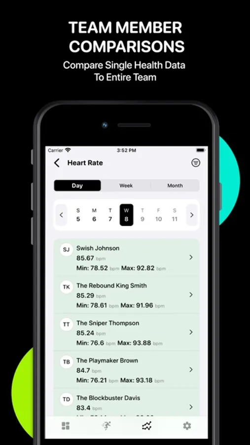 Compare single health data to the entire team and see how each team member stacks up. With the team member comparisons feature, you can get a clear picture of your team's health and see who is leading the pack.