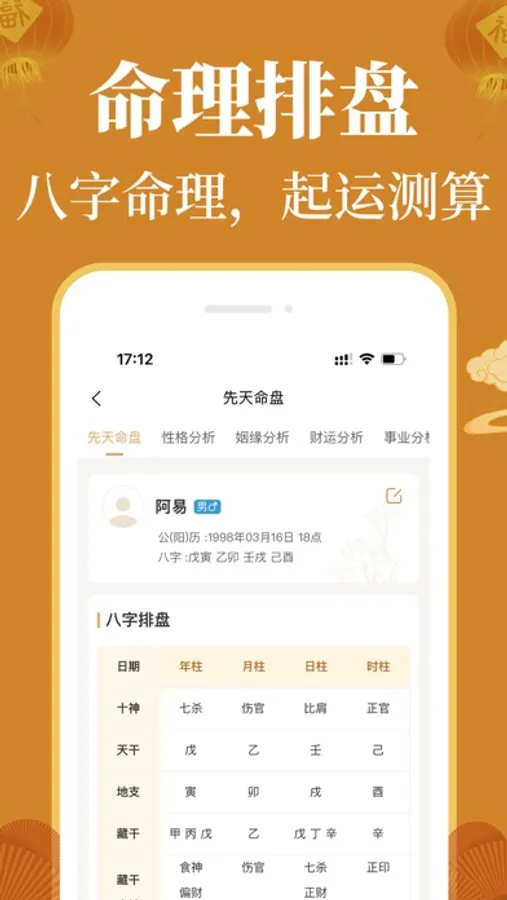 专业八字解析个人专属事业、姻缘、财运、健康运势,提前预知顺势,才能趋吉避凶
