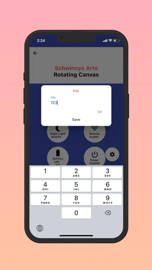 The Schwinnys Arts Rotating Canvas will be a product unit to display art on a diptych or triptych rotating wooden extrusion. The mechanical unit must be interoperable with the Schwinnys Arts mobile app. The app functionality includes Rotate Canvas, Dim Lights, Night Light On/Off, Remote On/Off, Battery Life %, Power On/Off, Motion Sensor On/Off, and Timer On/Off.