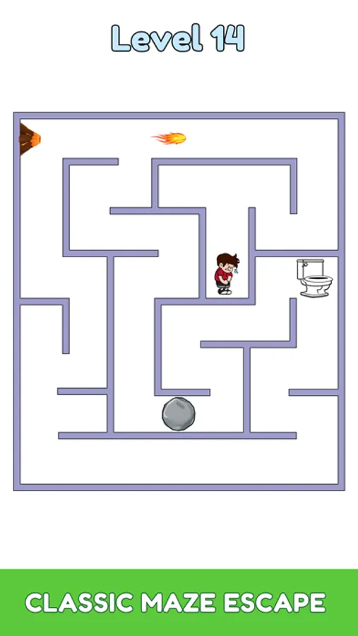 - Easy to Play: Draw to guide the character through the maze and find the toilet.