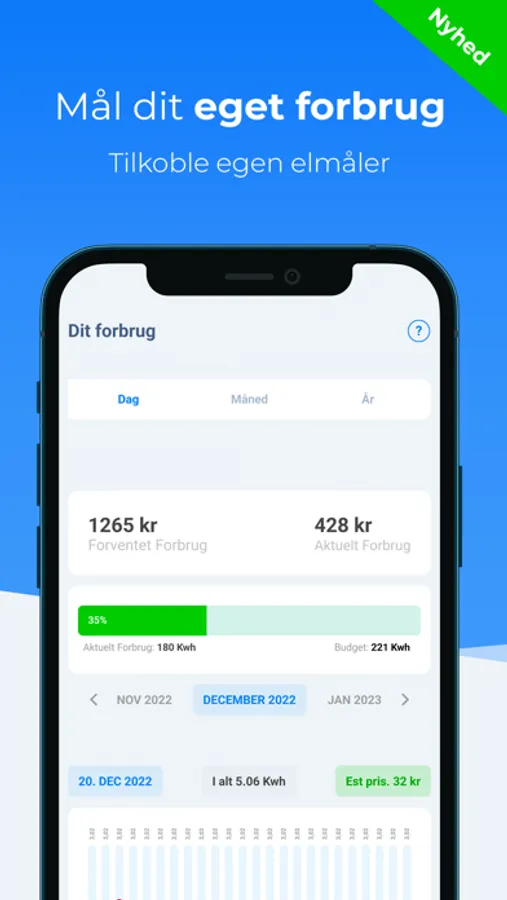 - Følg dit faktiske forbrug dagligt, månedligt, kvartalsvist eller time for time