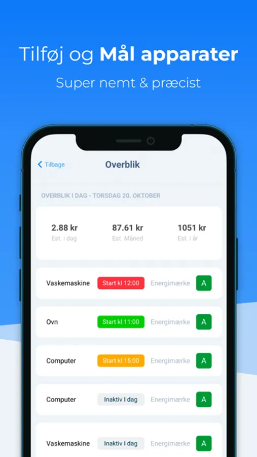 - Se dit forventede energiforbrug og mål apparater individuelt
