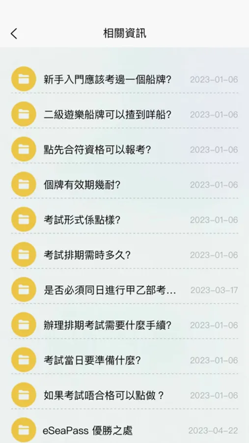 此應用程式包含了超過 1000條題目,模擬海事處二級遊樂船操作人「甲部(船主)及乙部(大偈)筆試」,每次限時45分鐘,隨機抽出 40條四選一的選擇題,完成後即時顯示結果。用戶更可以翻查試題,程式會一次過顯示各題的正確答案及用戶的選擇,讓用戶更容易掌握題目的相異,分辩重點。