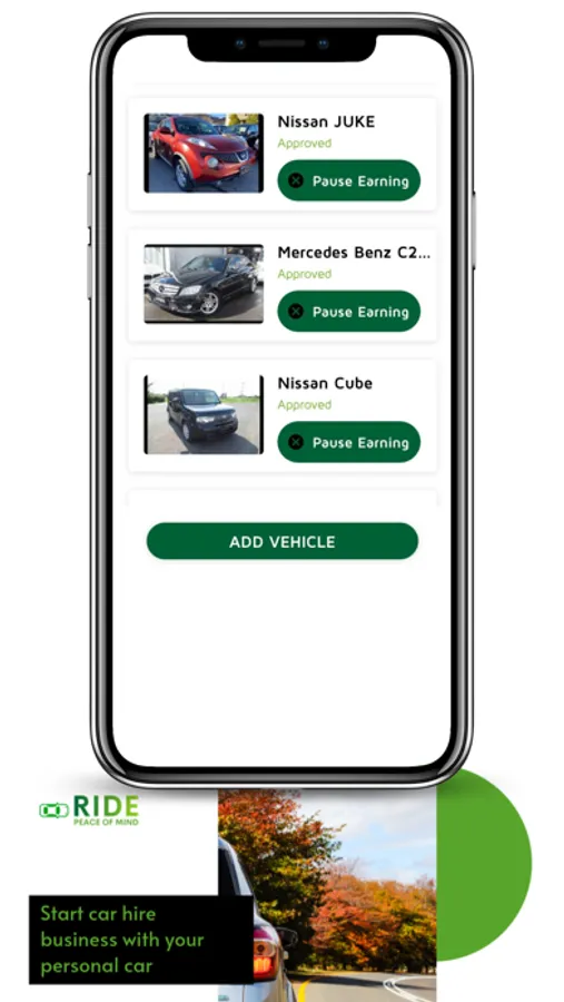 You offer your car for rental/Hire to your neighbor and EARN handsomely. After getting set up on Ride, most car owners earn enough to cover the costs of owning their cars, including loan monthly payments, fuel, and maintenance.