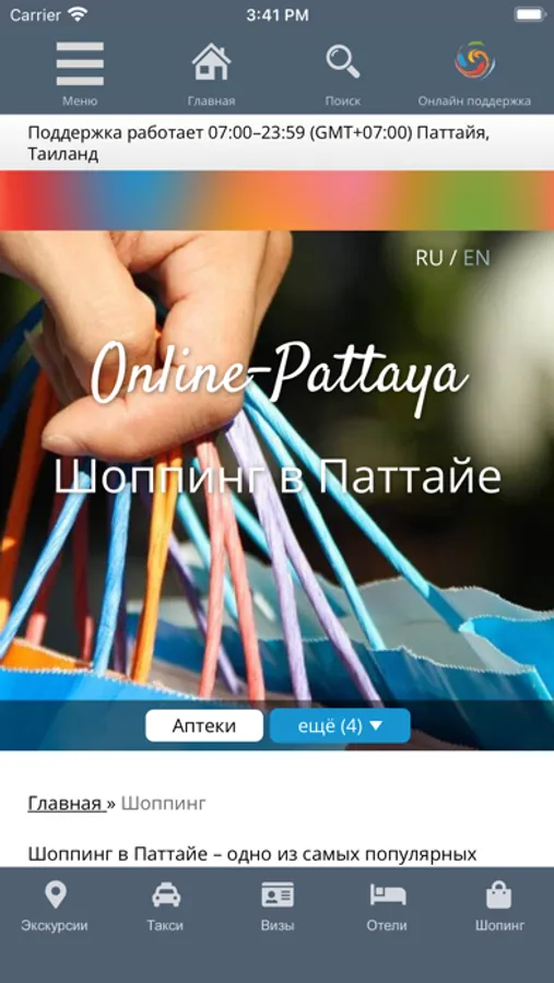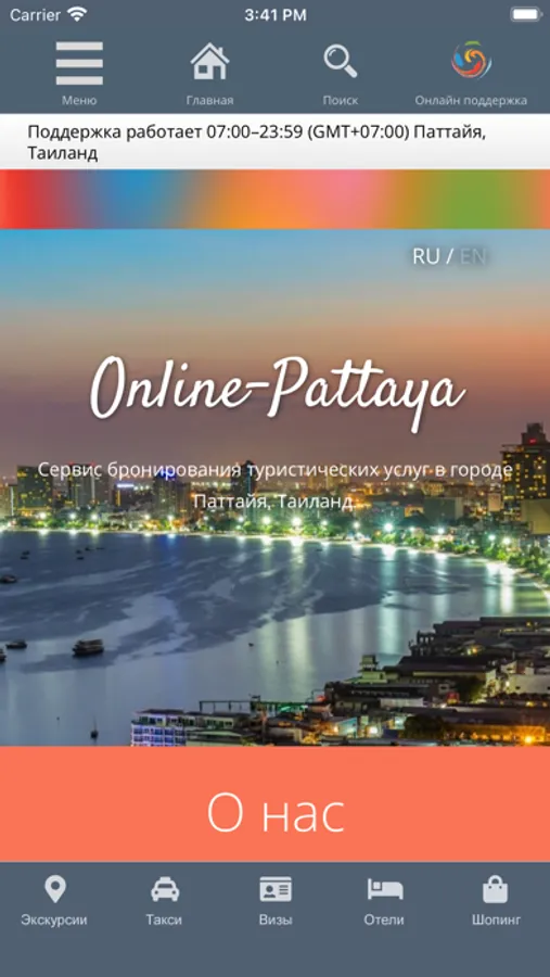Сервис Онлайн-Паттайя предлагает удобное бронирование наиболее популярных экскурсий в курортном городе Паттайя. Услуги встречи в аэропортах Бангкока, а также такси в аэропорт из Паттайи. Групповые и индивидуальные трансферы на острова Ко Самет, Ко Чанг и др. Бесплатные трансферы в популярные магазины города и СПА салоны. Визовые услуги для тех, кто решил остаться в Таиланде подольше.