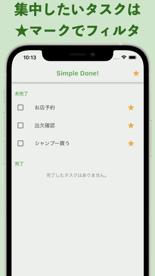 やることが多い場合は集中したいタスクに星マークを付けてフィルタ可能。
