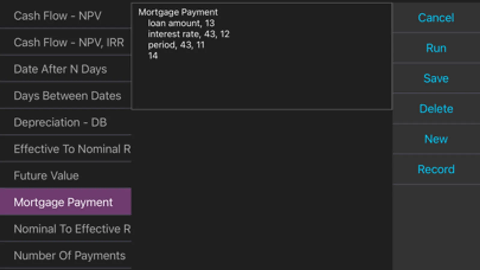 You can record your key strokes for specific calculations and store them as recipes. The recipes remove the burden of remembering the exact keystroke sequence for your tasks. You simply select a pre-recorded recipe (builtin or your own) and run. When running a recipe, the app visually prompts you with the keystrokes to press and guides you along in getting the results.