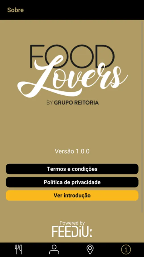 Seja bem-vindo à aplicação Food Lovers, do Grupo Reitoria. Instale a nossa aplicação e usufrua de funcionalidades tais como cartão de fidelização de cliente, no qual pode acumular descontos, reserve a sua mesa num dos nossos restaurantes e esteja a par das nossas novidades!
