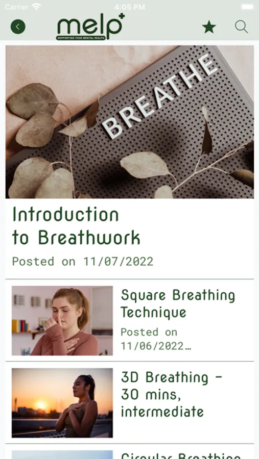 Whether you are looking for support with a particular issue, i.e. anxiety or stress; or know that you need some space for calm, using a particular tool or technique, i.e. breathing exercises or meditation, as well as counselling and coaching resources, the Melp app brings this all together.