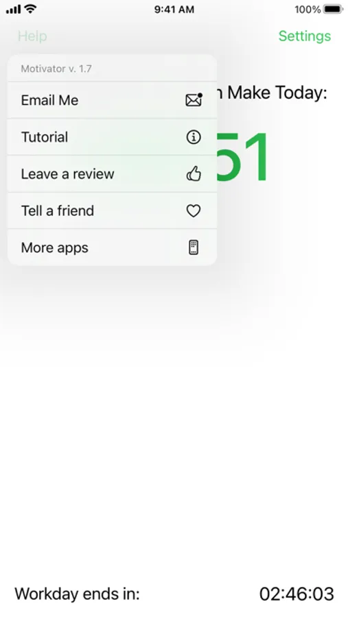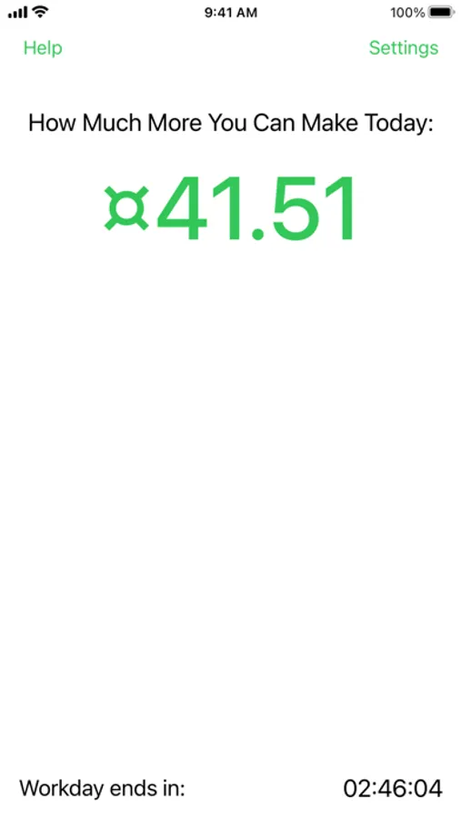 Simply enter your hourly rate and work hours, and the app will show you a live countdown for how much more you can make today.