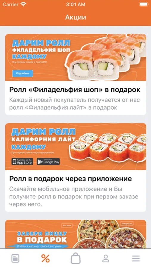Всегда под рукой, в приложении — история заказов, наши акции. Запомним ваши адреса доставки, повторное оформление будет еще проще и быстрее!