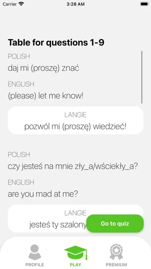 Langee is an application for learning English and Polish. It allows its users to learn by having fun, engaging in quizzes and battles.