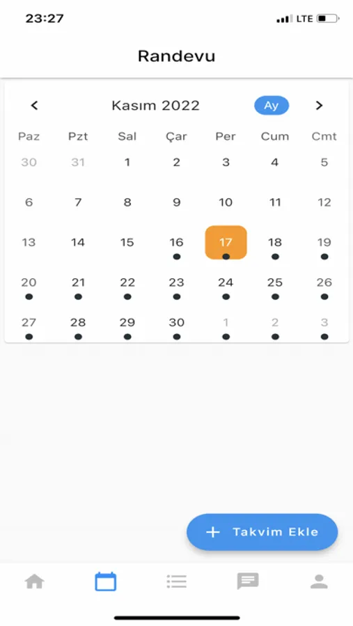 Ana sayfa açılınca aşağıdaki randevu kısmına tıklayın. Burada randevu verirken ekranda takvim açılacak. Takvimin üst kısmındaki sağ ve sol butonlarıyla randevu vermek istenilen ay’a gidin. Daha sonra seçmek istenilen günün üzerine tıklayın ve o günü turuncu kutucukta seçin. Sağ altta yer alan takvim ekle butonuna basıp randevu detaylarını seçeceğiniz alana gideceksiniz.