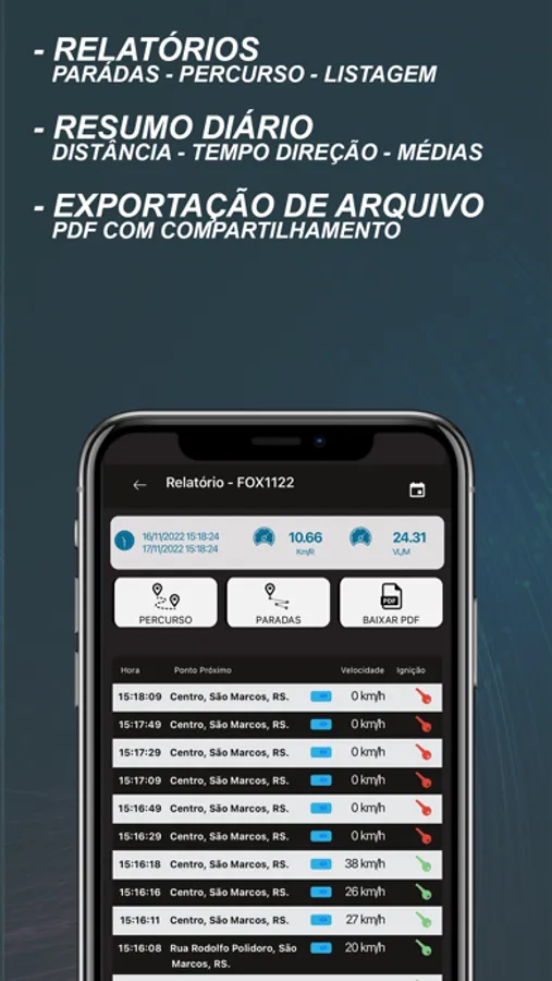 Você poderá ver aonde estão todos os seu veículos no mapa, e poderá consulta o trajeto diário, e visualizar todos os locais que seu veículo esteve no dia.