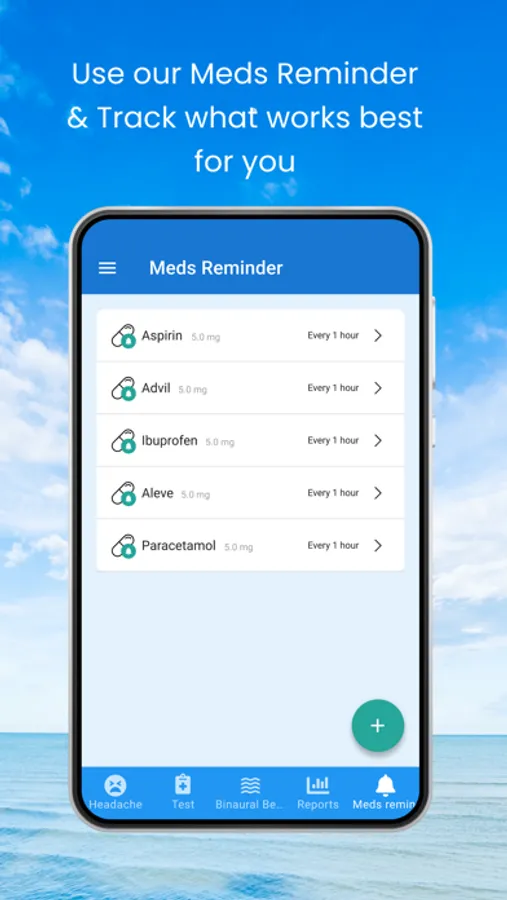 The App also determines the type of headache you may be having and the possible cause. Has a reminder function to remind you of meds if you take meds. And Binaural Beats, Ocean music to reduce pain.