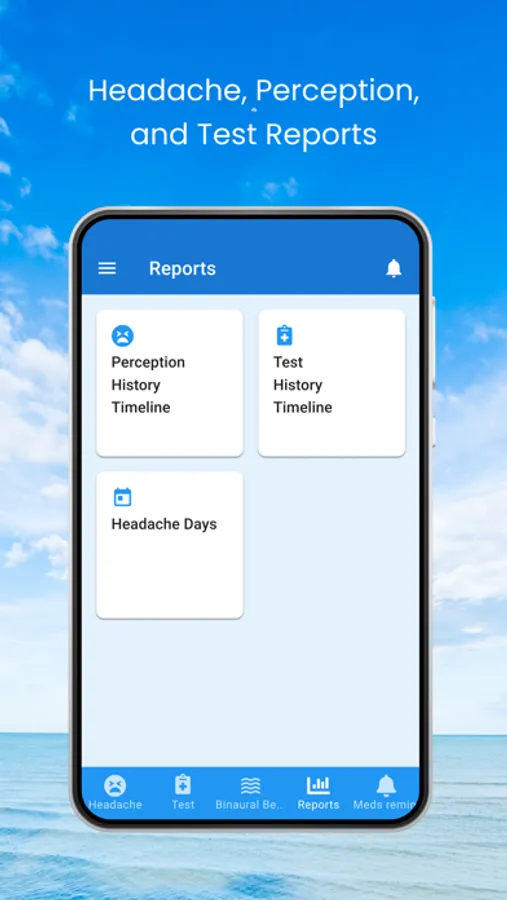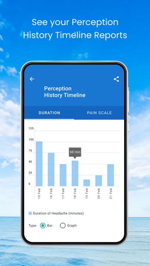 4. Provides your Headache Perception History, Test History Timeline, and Graphs.