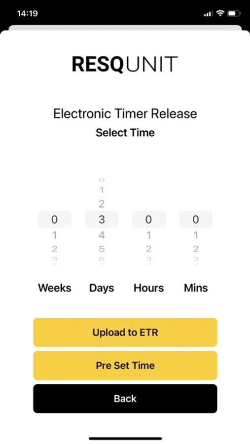 RESQUNIT ETR is the application you need to activate and configure the ETR (Electronic Timer Release) that can be used on the RESQUNIT trap recovery system/spare buoy. With this app you can both read and set your preferred timer configuration.