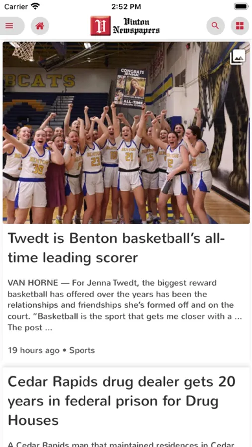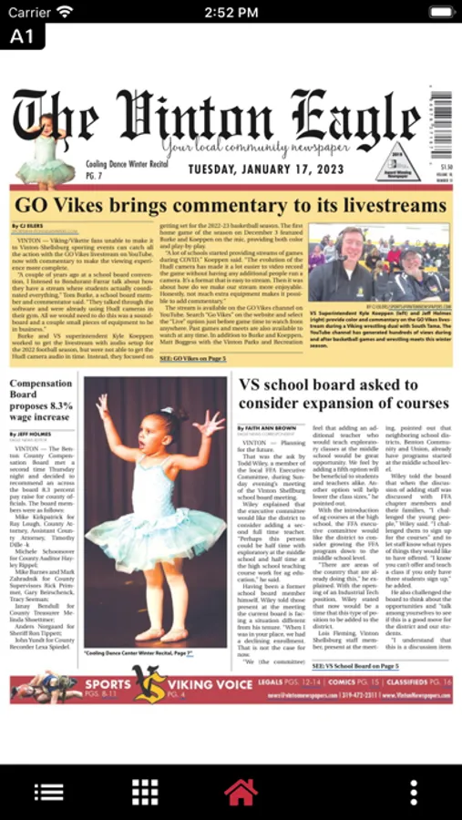 The Vinton Newspapers 2-in-1 app features a live news feed and breaking news mobile alerts, keeping you up to date in real time, along with convenient access to the print replica e-editions of both the Vinton Eagle and Cedar Valley Times..