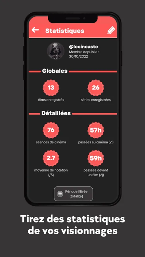 Avec Note2Film, enregistrez tout vos visionnages au même endroit ! L'application vous permet d'avoir un suivi sur votre activité au cinéma et sur les plateformes de streaming !