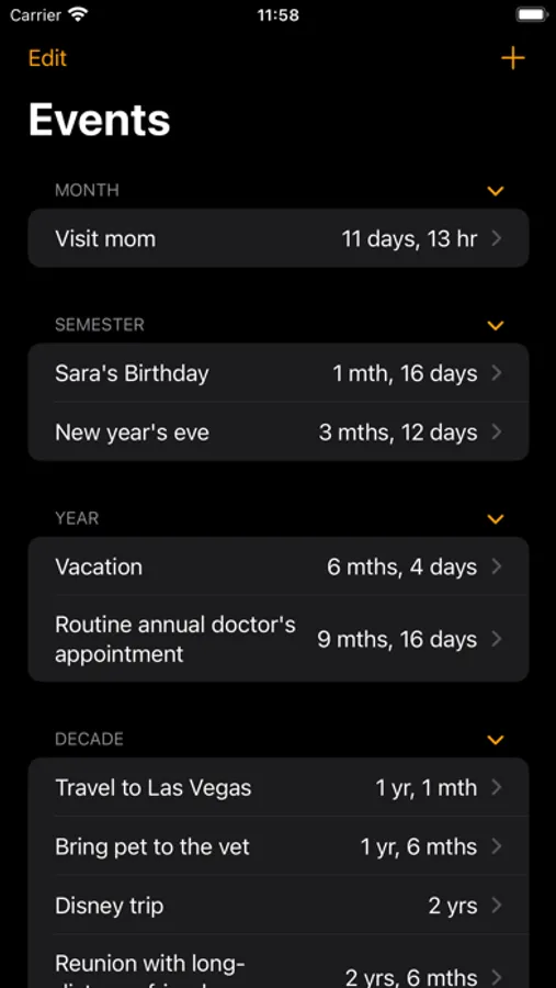 With Date Counter you will be able to find out how much time left you have for all of your events.