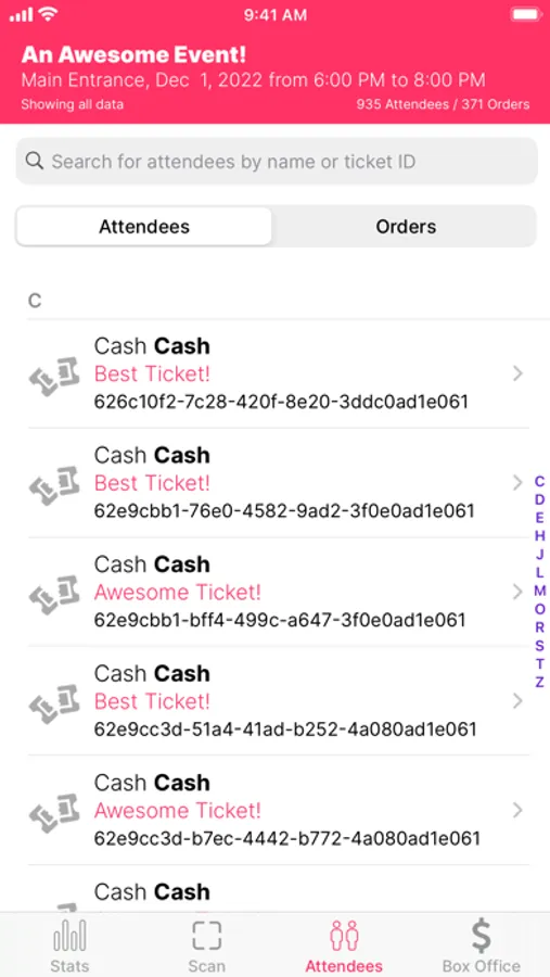 - Easily find attendees through search of last name, ticket number, or order confirmation number