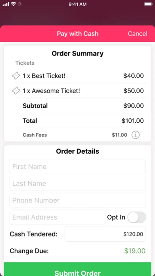 - Create orders and accept cash or credit cards (certain audio card readers are supported, see our website for more details)