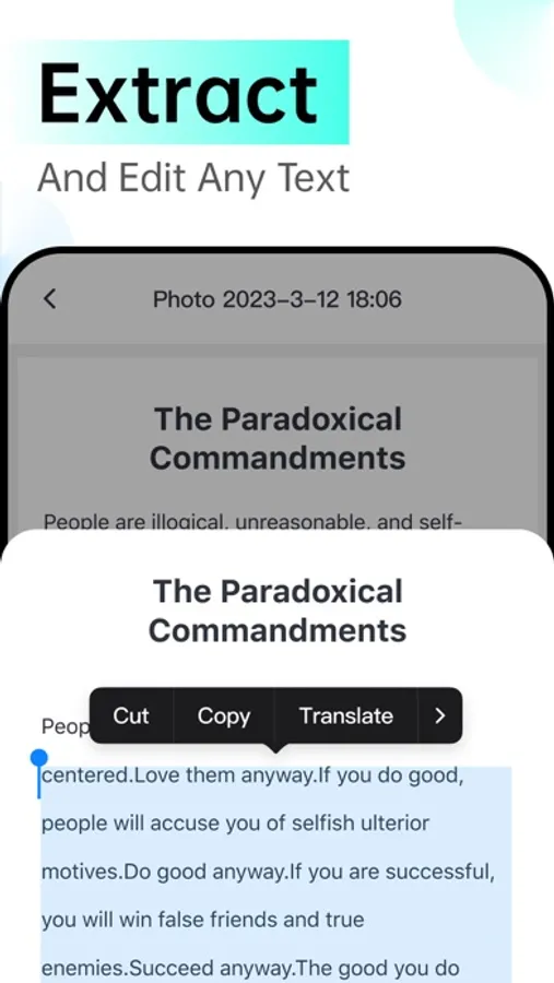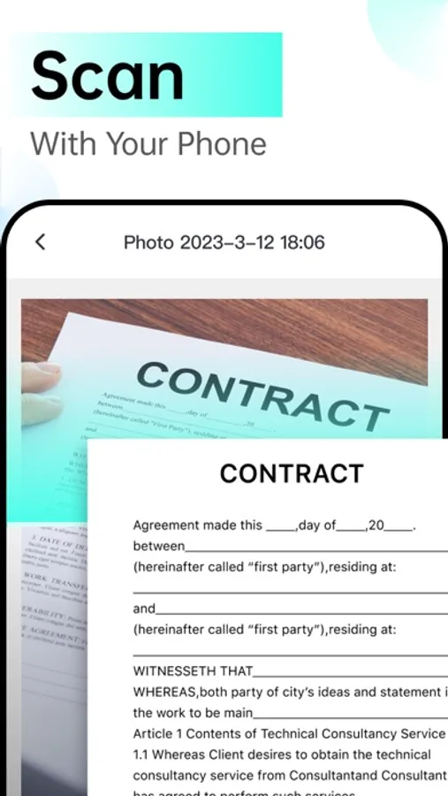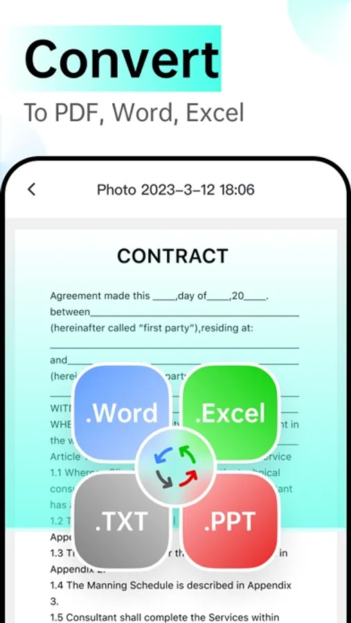 ● Professionals: Scan contracts, forms, meeting PPTs, etc. at any time, save or share PDFs with one click, search and read at any time, extract text, copy and edit, very powerful office software