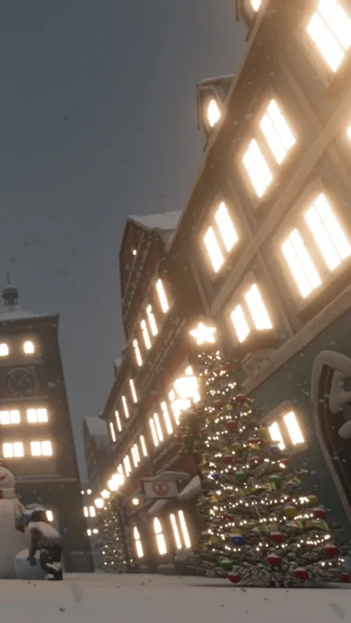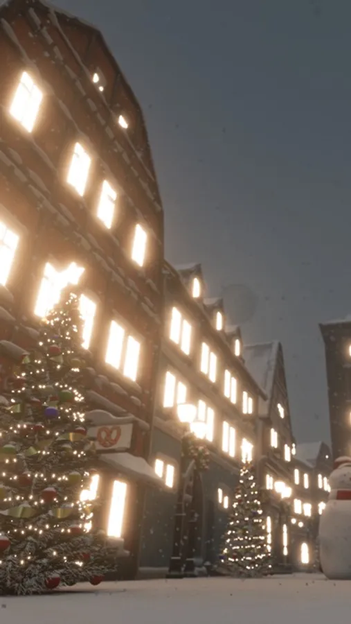 A Christmas market in a picturesque cityscape in the middle of winter.